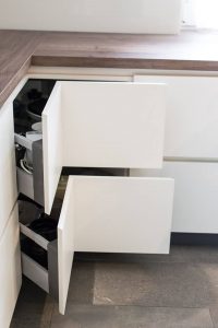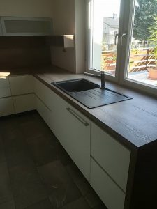 Kuhinja je središče vsakega doma, zato je pomembno, da se v njej družina dobro počuti. Kuhinja mora biti torej lepa, praktična in funkcionalna. Za vse to poskrbimo mi, saj vam izdelamo kuhinjo po naročilu. Lahko vam izdelamo kuhinjo v modernem ali klasičnem stilu, z otokom ali brez. Vsaka kuhinja po meri ima vgrajene kvalitetne lesne materiale in okovje. Predali, izvlečne košare, izvlečne kolone, ledvičke in izvlečni koši za ločevanje odpadkov poskrbijo, da so vse stvari na svojem mestu. Vsi elementi se mehko zapirajo (soft close). Pod vrhnje omarice vam lahko vgradimo nepogrešljive LED luči po celi dolžini omaric. Na steni med omaricami lahko vgradimo opty white steklo, barvano v kakršni koli barvi ali v različnih vzorcih. Kuhinjski pult vam izdelamo iz ultrapasa, kerocka, lesenega lepljenca ali pa najbolj odpornega granita ali umetnega kamna.
